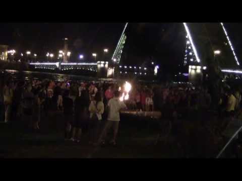 La última noche en San Petersburgo la pasé observando y disfrutando de la "apertura" del Puente de Palacio.